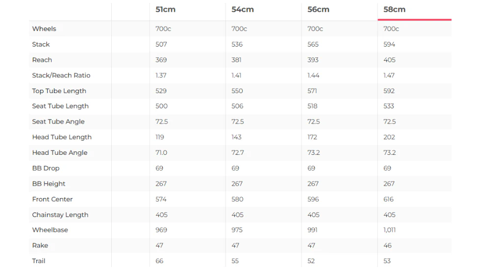 • Stack-to-Reach Ratio: 1.50 (indicating a more upright, comfortable position)