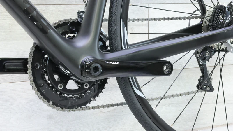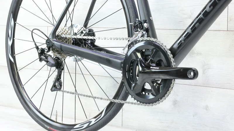Crankset: Power is transferred through a stiff and efficient Shimano 105 R7000 crankset. For the 59cm frame, the crank arms are appropriately sized at 172.5mm to ensure optimal fit and leverage for taller riders .