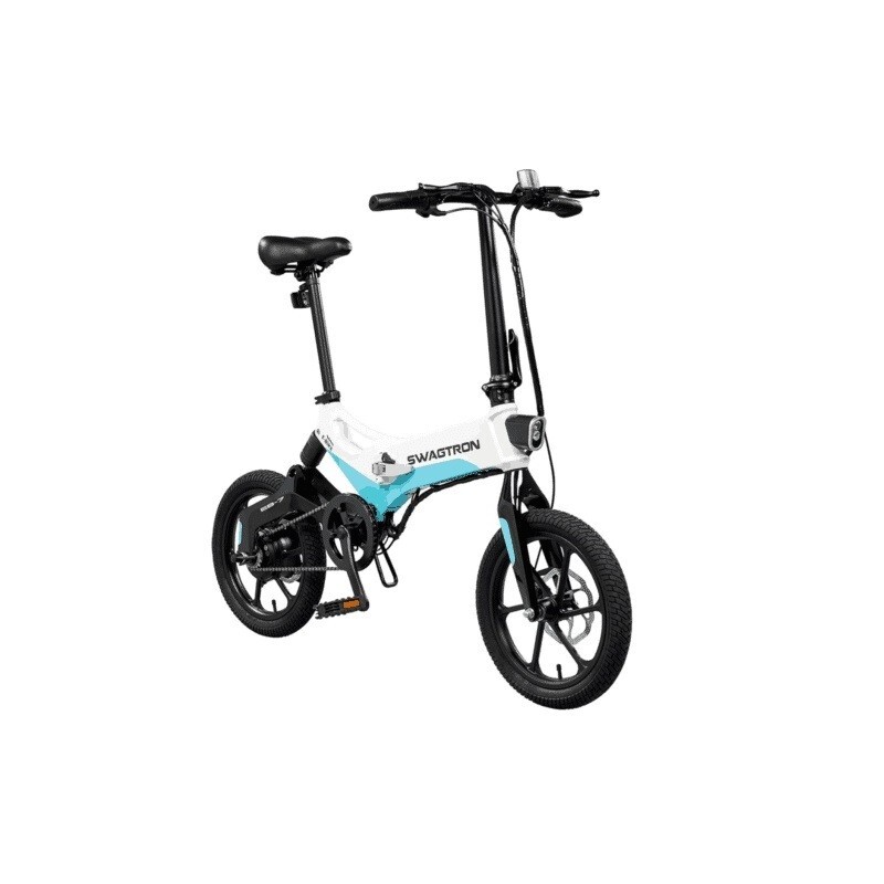 • Swagtron EB7 Folding Electric Bike (White/Blue)